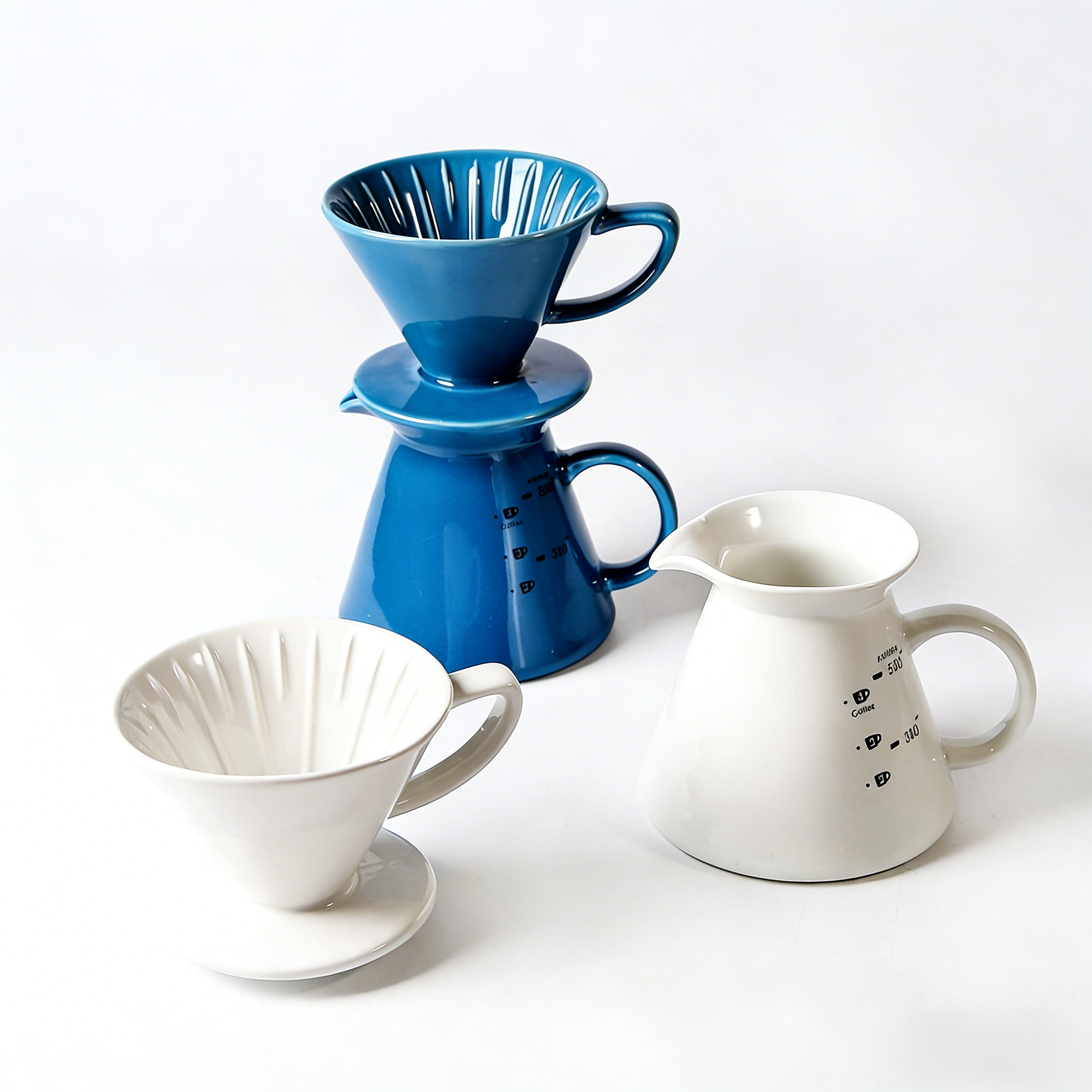 Available in classic white or vibrant blue, this set combines aesthetic appeal with durable functionality, making it a standout addition to any modern kitchen or coffee bar.