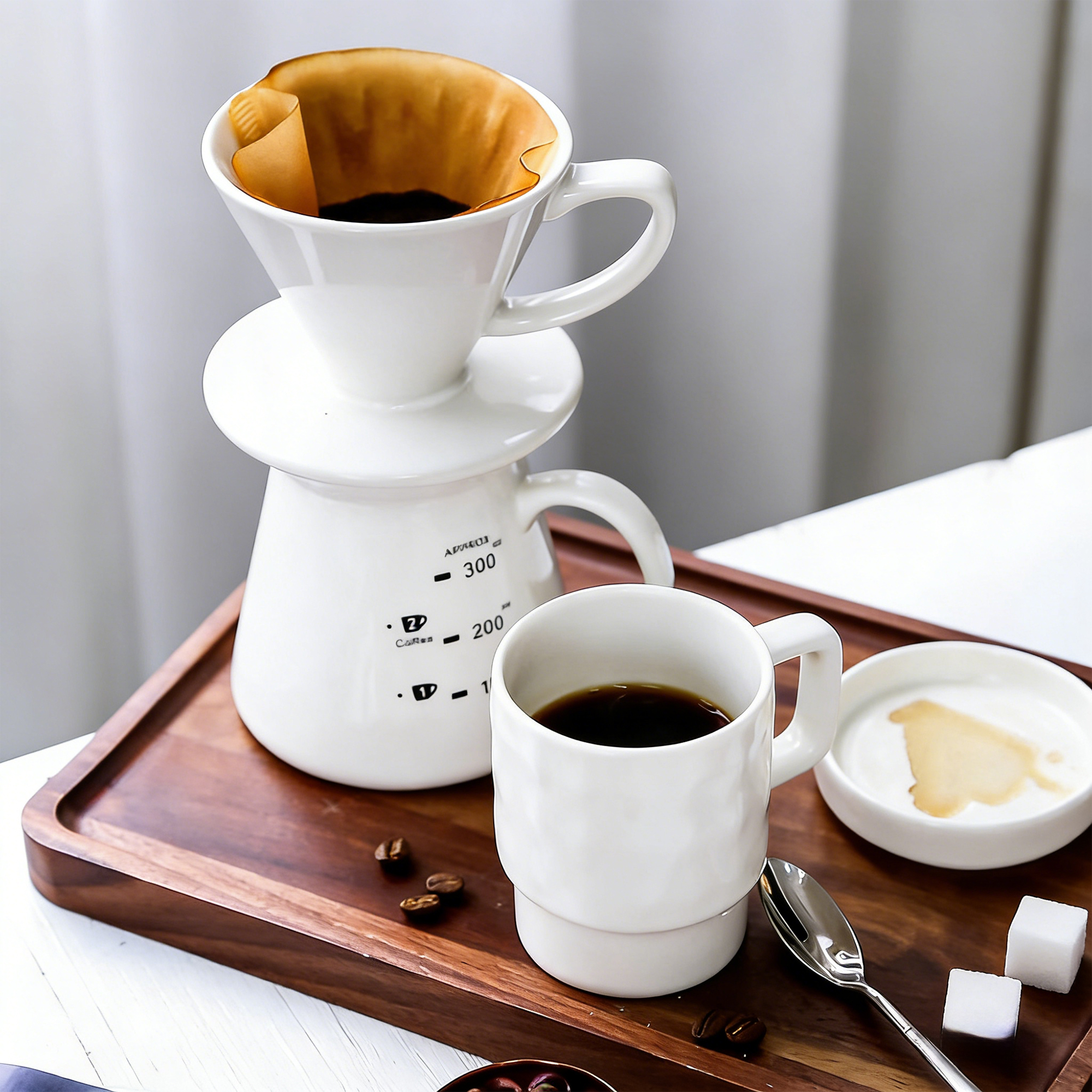 This elegant pour-over set is made from high-quality, food-safe ceramic with FDA and BSCI certifications. Its smooth, heat-resistant glaze is easy to clean and maintains optimal brewing temperature.