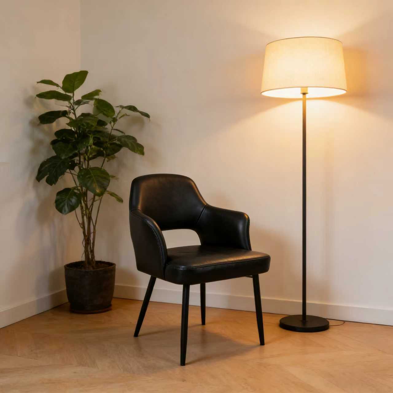 Slim, powder-coated black metal legs provide a clean contrast and a modern edge. The sturdy base ensures stability and protects flooring, all while preserving a lightweight, minimalist profile.