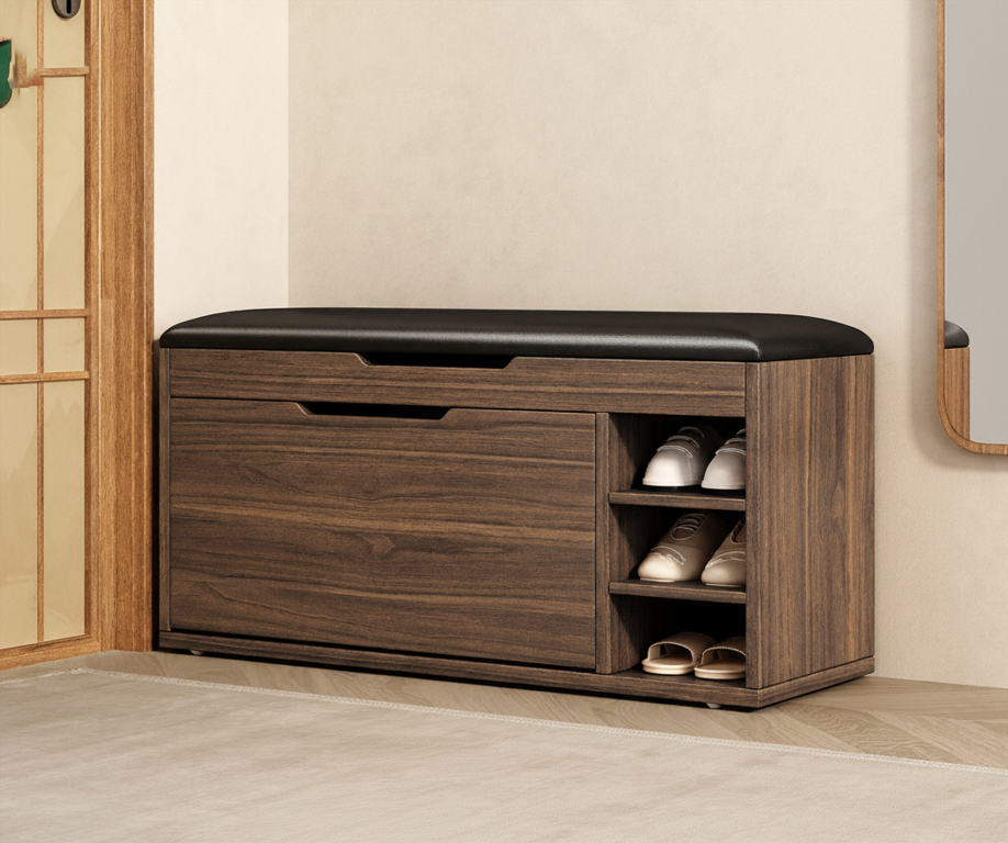This versatile shoe changing bench is crafted from high-quality, eco-friendly solid wood boards with a paint-free, scratch-resistant finish. Designed for modern living, it features a cushioned leather seat filled with high-resilience sponge for maximum comfort. The functional flip-drawer design includes adjustable internal partitions to accommodate various shoe sizes, from flats to high heels. Additionally, a hidden top compartment provides convenient storage for small essentials like keys or umbrellas. Available in multiple widths and tier configurations, this durable bench combines elegant aesthetics with practical, multi-functional organization for any home.