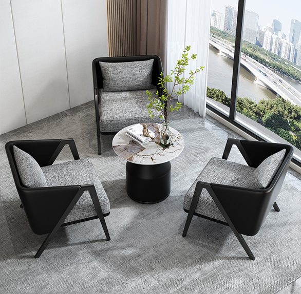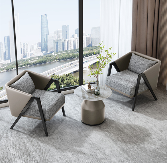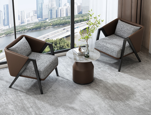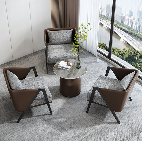 An Italian-style minimalist lounge chair featuring high-density rebound foam, premium PU leather accents, and breathable linen-fabric cushions, all supported by a sturdy carbon steel and solid wood frame.
