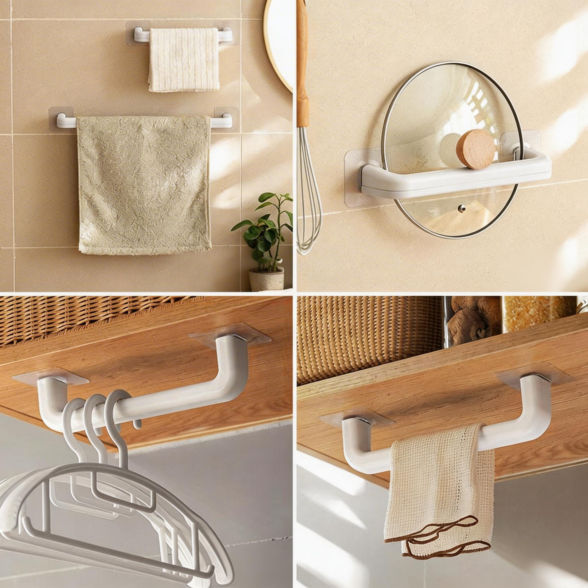 Maximize your vertical space with this versatile single-bar rack. Featuring strong, traceless adhesive for drill-free installation, it provides a sturdy storage solution for any room. Perfect for organizing slippers, pot lids, or hangers, it keeps your space neat without leaving marks on your walls.