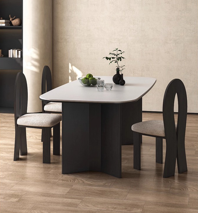 Elevate your interior with the Designer Dining Chair, a perfect blend of avant-garde art and functional comfort. The chair is defined by its dramatic, high-back cutout silhouette and is upholstered in premium, wear-resistant microfiber leather for lasting durability. It features a plush, cream-colored padded seat that provides superior support. Whether used as a singular accent piece or as part of a sophisticated dining set, its bold geometric form adds a high-end, contemporary touch to any space.