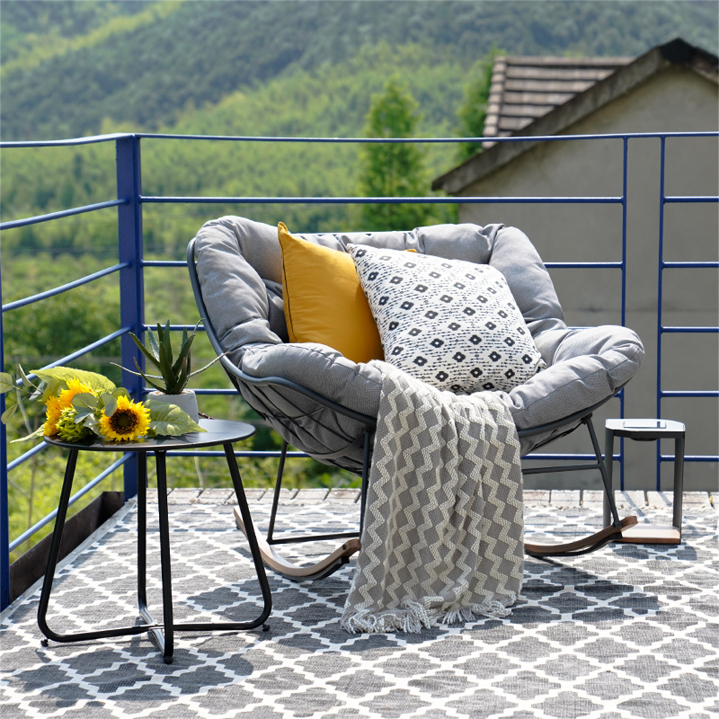 A Nordic-style leisure rocking chair featuring a wide, ergonomic iron frame and a soft, high-rebound PP cotton cushion. Designed for ultimate decompression and comfort in both indoor and outdoor settings.