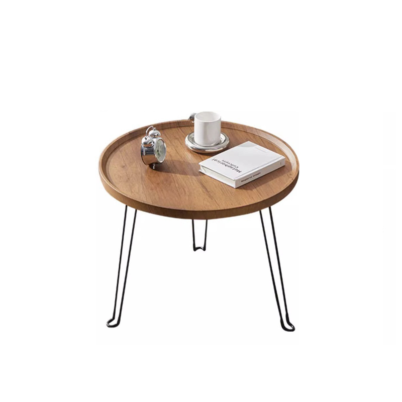 This stylish, lightweight coffee table combines functionality with a minimalist aesthetic. It features a thickened, waterproof wood-grain tabletop with a unique “tray-style” raised edge to prevent items from sliding off. Supported by stable, triangular-structured metal hairpin legs, the table includes anti-slip rubber feet to protect floors. A key feature is its space-saving foldable design; the legs easily collapse flat against the underside for effortless storage or transport. Ideal for living rooms, bedrooms, or even as a portable car table, it balances modern “light luxury” style with practical durability.