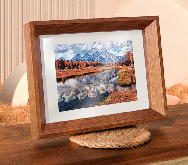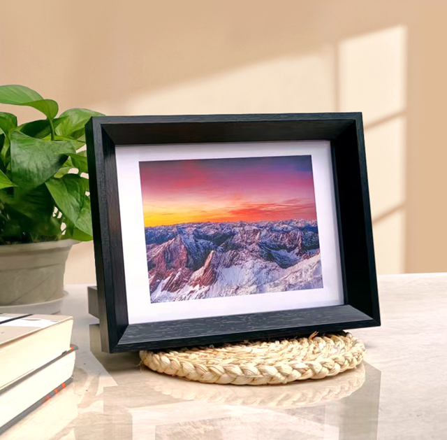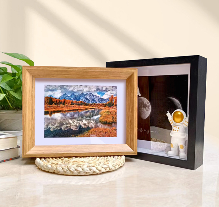 This solid wood picture frame features a timeless rectangular profile with a refined beveled edge and a protective front panel for clear image presentation. Designed with a white mat to enhance depth and focus, it suits photographs, art prints, and posters. The frame is crafted from real wood or high-quality wood composite, providing strength, stability, and a natural texture. Available in multiple finishes, it complements modern and traditional interiors alike. Ideal for wall mounting or tabletop display in homes, offices, galleries, or studios.