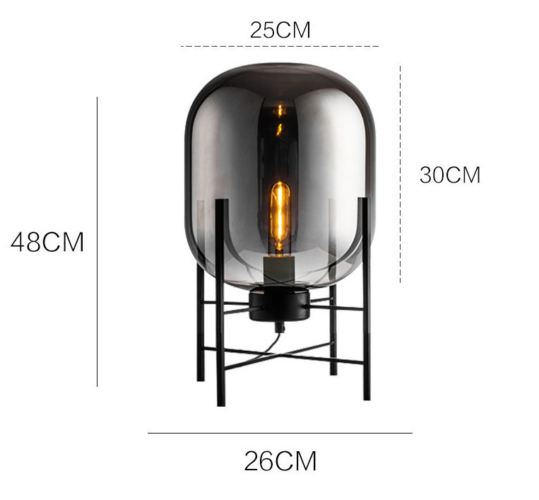 Stylish Nordic design with a smoked or amber-colored electroplated glass shade and black metal base. Uses one E27 bulb. Perfect for bedrooms, living rooms, and study areas.
