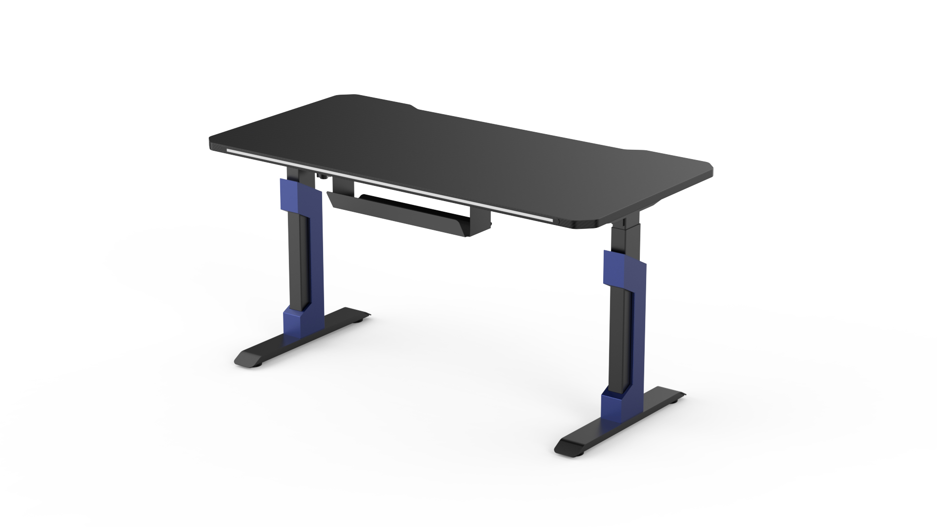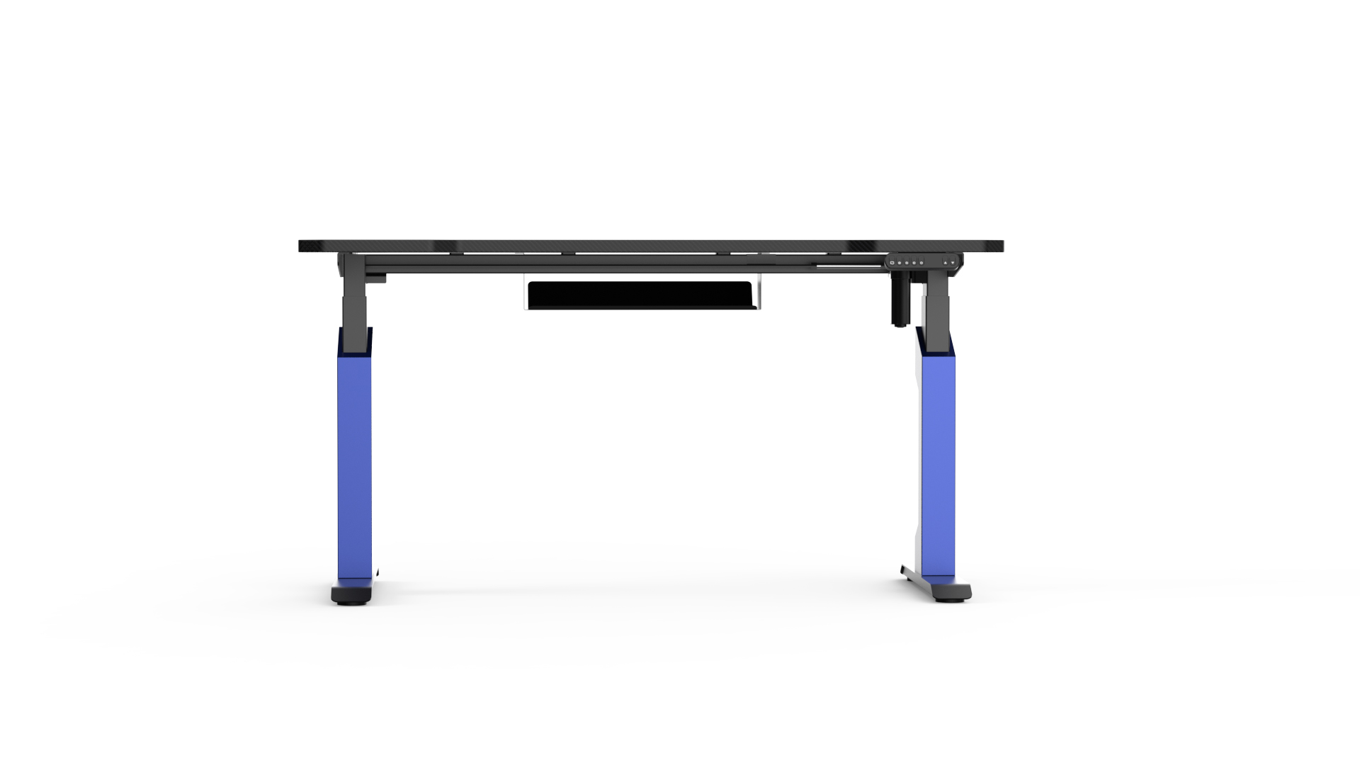 Forge your personalized battle station with the Apex Custom Style Standing Desk. Featuring a durable carbon fiber–finished desktop and bold blue accent panels designed for DIY customization, it blends performance with individuality. The intelligent controller enables smooth height adjustment, delivering a fully immersive, organized, and ergonomic gaming setup.