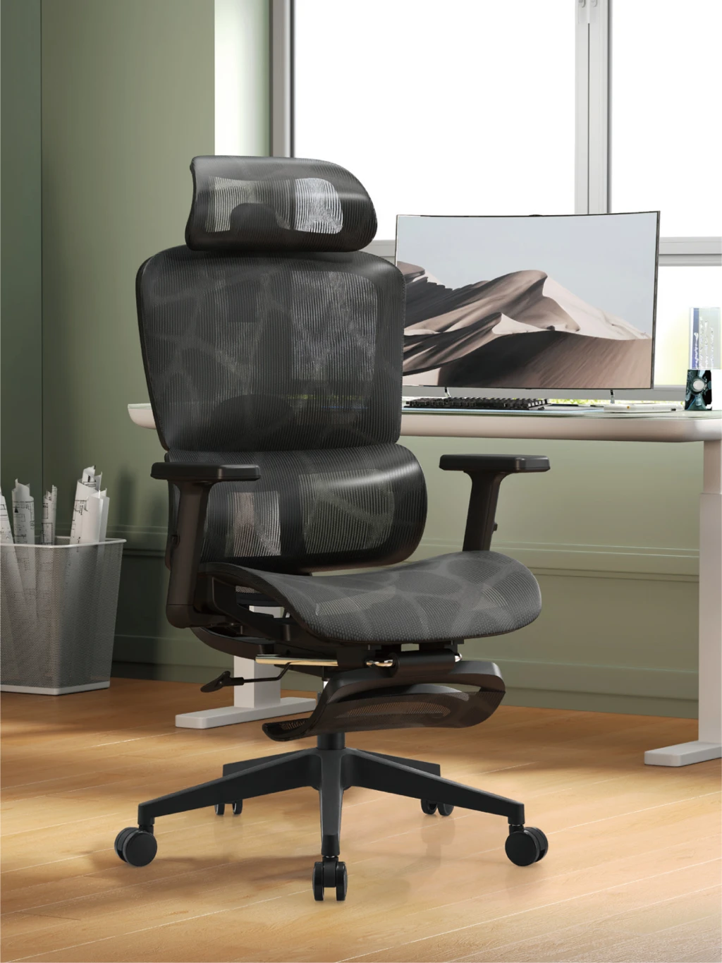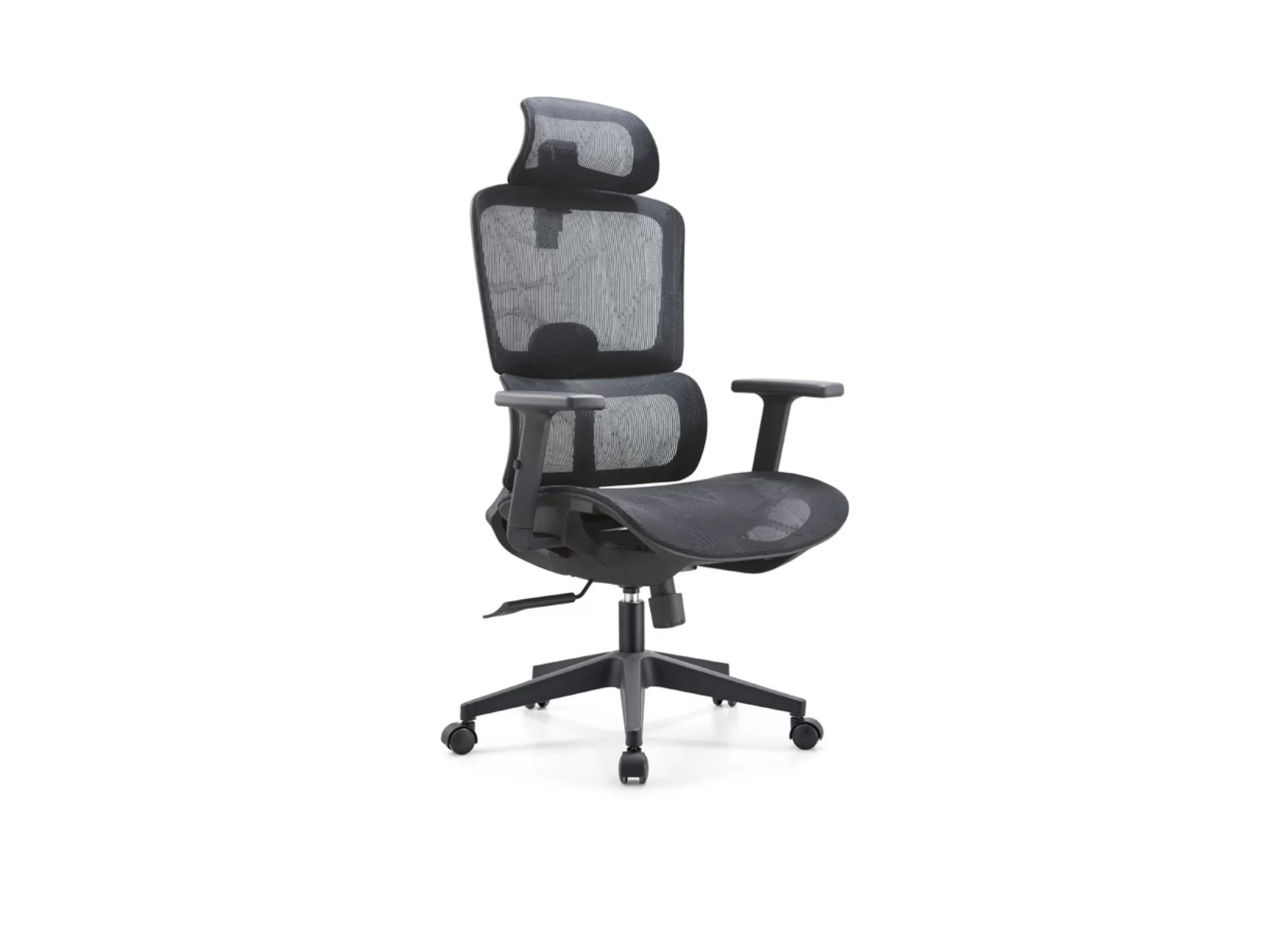 This ergonomic mesh office chair is designed for maximum comfort and support throughout the workday. It features a breathable mesh back, padded seat, adjustable headrest, lumbar support, and smooth mobility, making it ideal for modern workspaces, home offices, or conference settings.