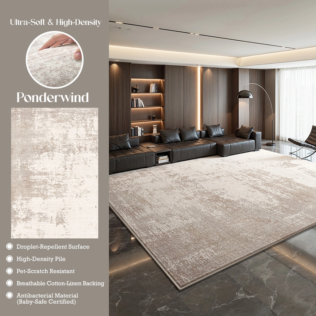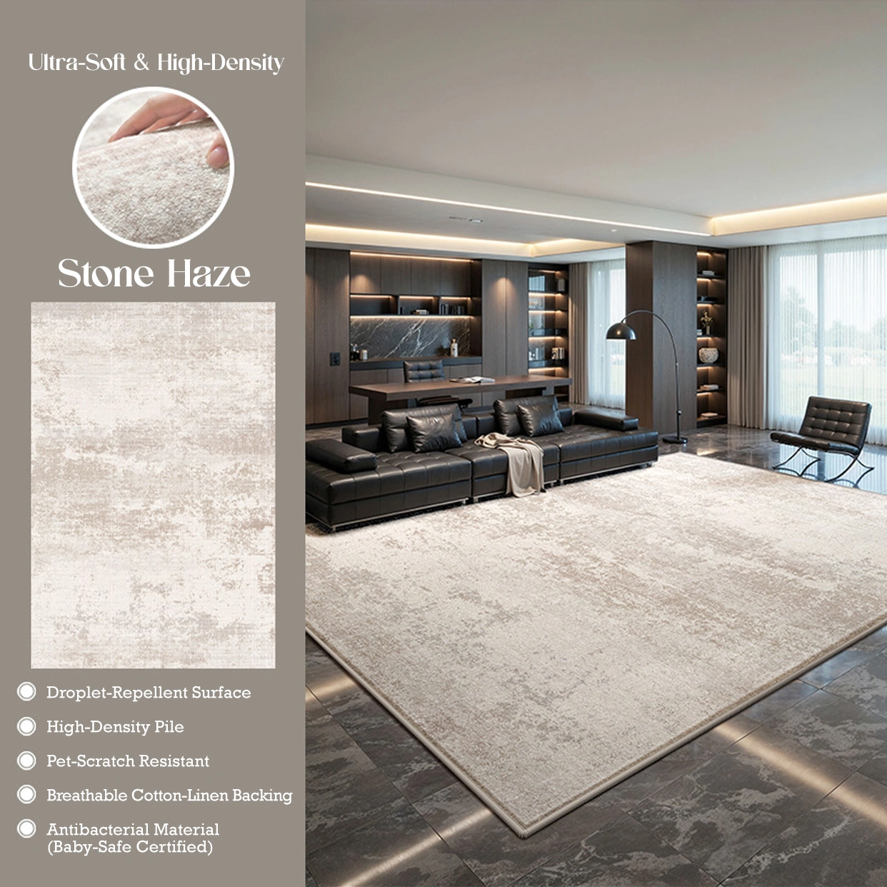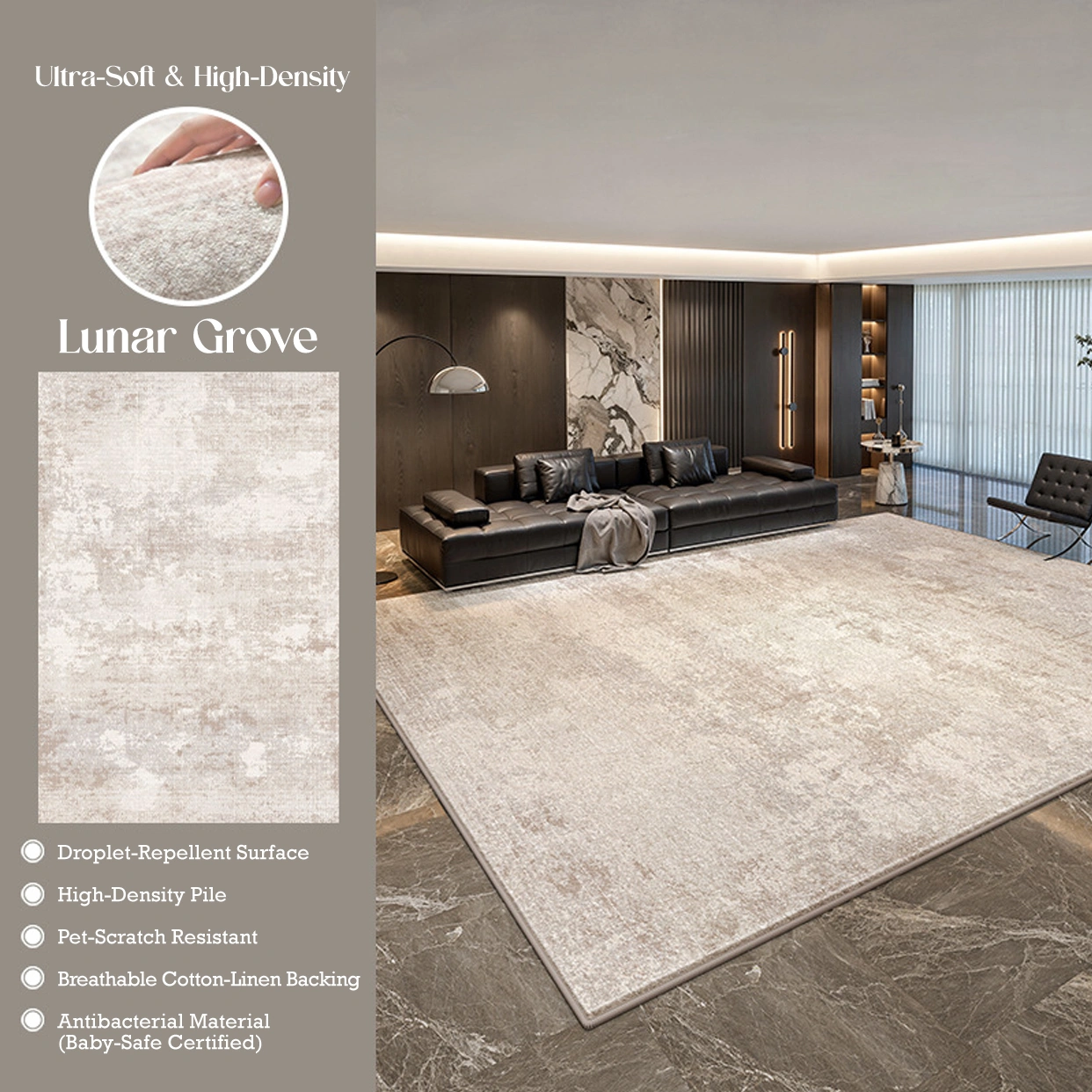 Elevate your space with the Willow Whisper Velvet Rug, where modern design meets everyday practicality. Featuring a soft, abstract pattern in calming neutral tones, it is crafted from ultra-plush faux velvet for a warm, luxurious feel. With a water-repellent surface for easy care and a breathable, non-slip backing for durability, it offers effortless comfort—perfect for busy homes, pets, and family living.