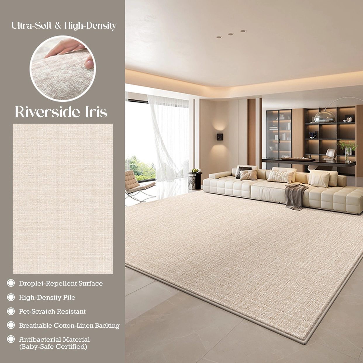 Cotton-linen blend base provides stability, airflow, and floor protection.
