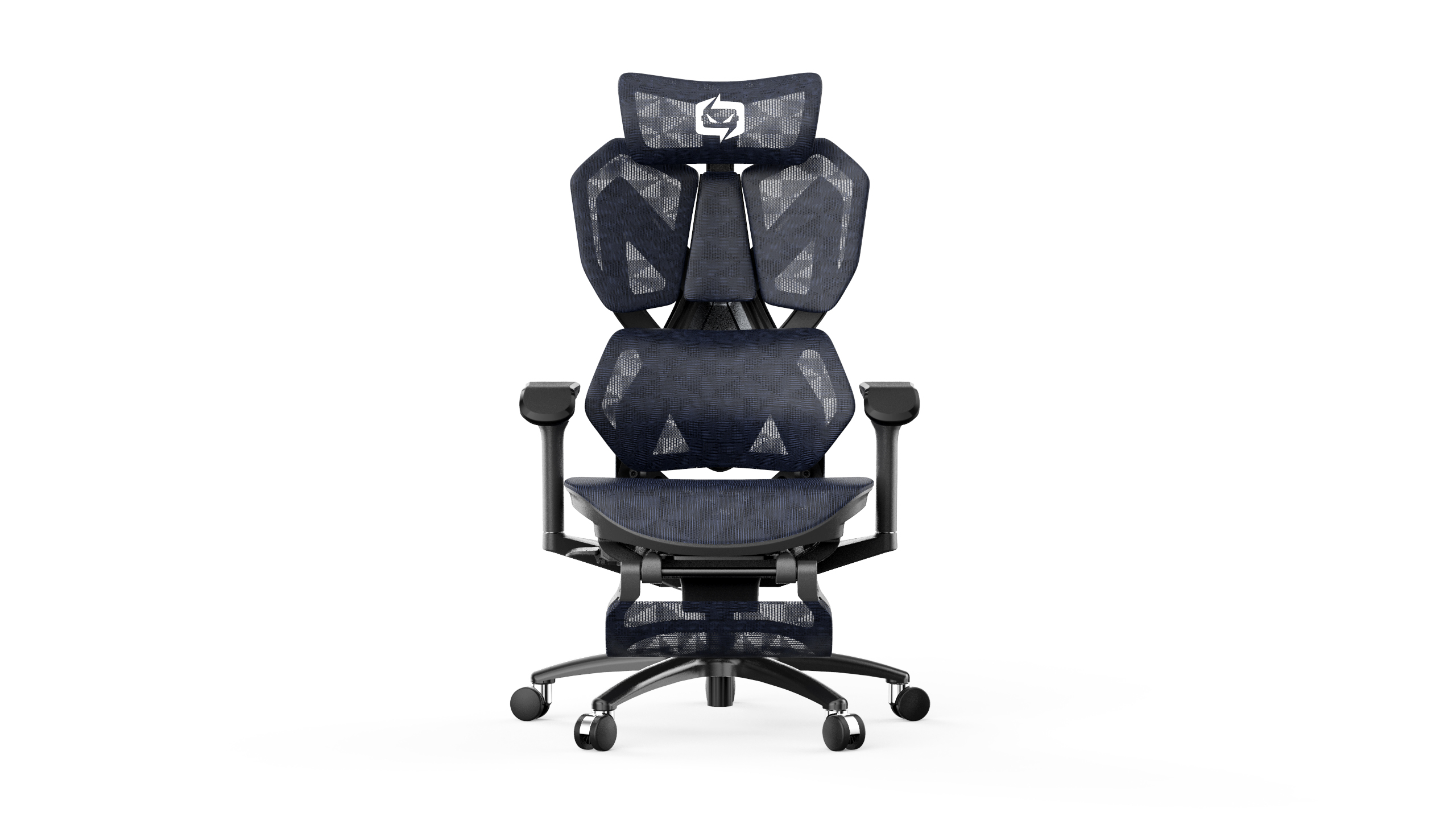 The Vector Adaptive Executive Chair is engineered for stability, performance, and refined style. Featuring a striking dark blue mesh seat, sleek silver backrest, and a two-tone black and gray frame, it delivers a modern, high-contrast aesthetic. Built on a heavy-duty steel base with a Class-4 gas lift, it ensures lasting durability, while 4D adjustable armrests and a retractable footrest provide fully customizable comfort and full-body support.